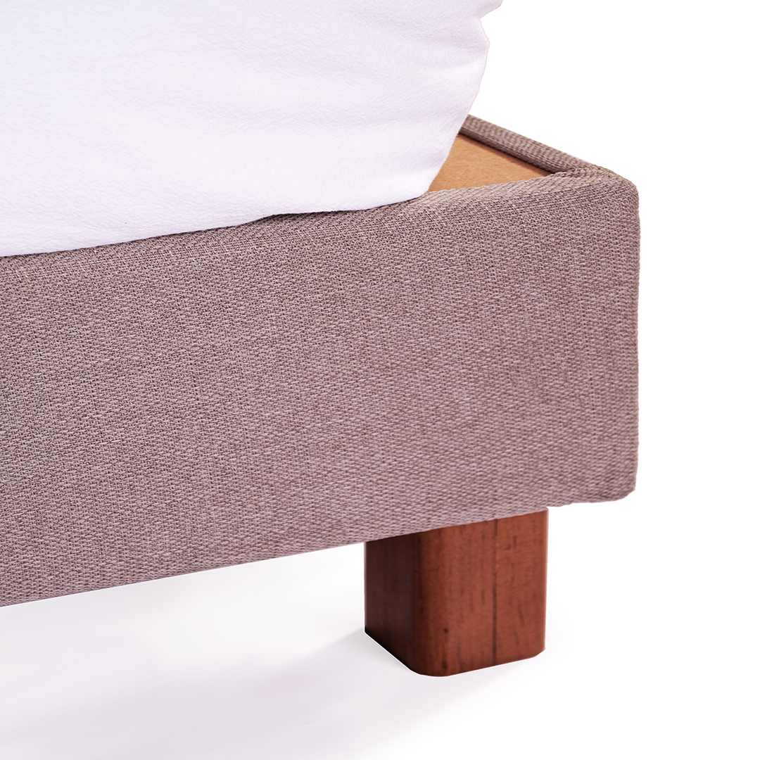 Base con un diseño contemporáneo, tapizada, la cual puedes ser personalizada con la tela de tú elección.