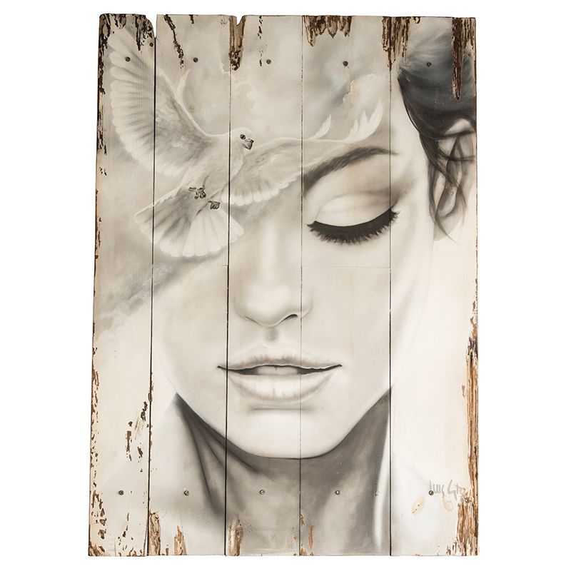Cuadro pintado por Luis GTZ. Artista Plástico, Mujer paloma inspirado en la feminidad de la mujer y su pureza.